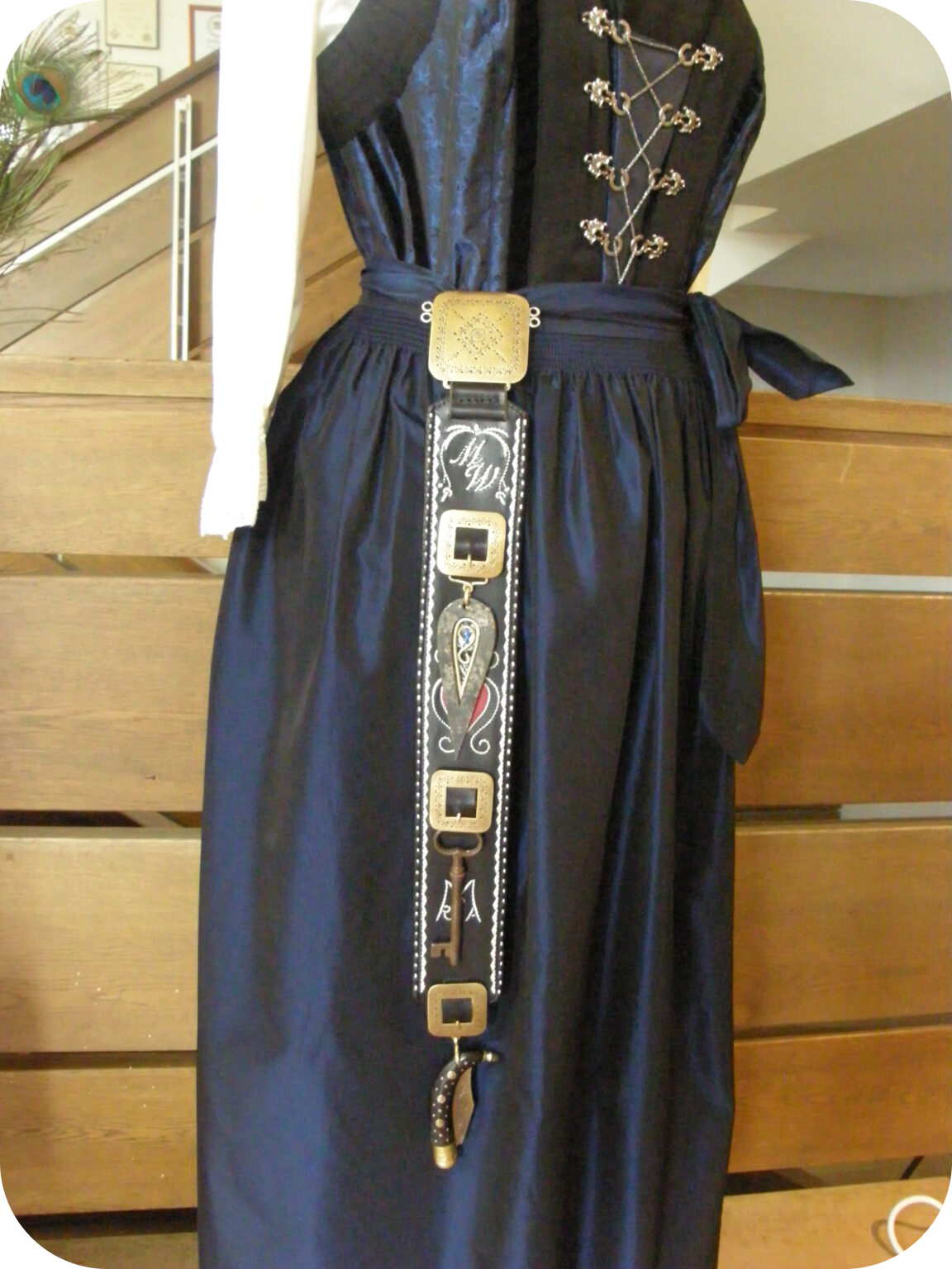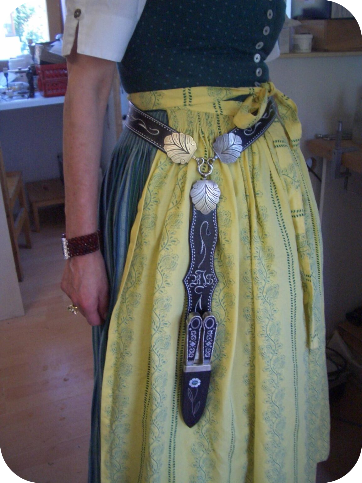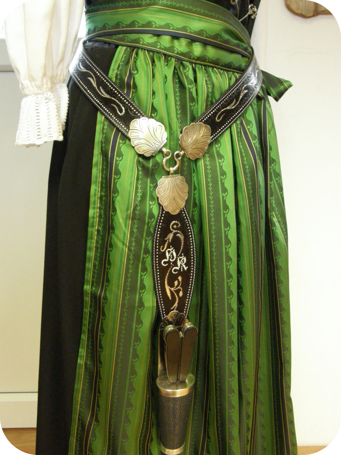 Nicht nur Männer trugen früher mit Federkielstickerei verzierte Schmuckgürtel, die Geschichte der Frauengürtel ist ungleich länger. Ab dem 16. Jahrhundert führten freie Frauen aufwändig gearbeitete Bestecke und Gebrauchsgegenstände wie Feuerschläger, Schlüssel und Drudenmesser, als Statussymbol, an ihren reich verzierten Gürteln.