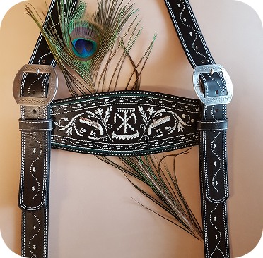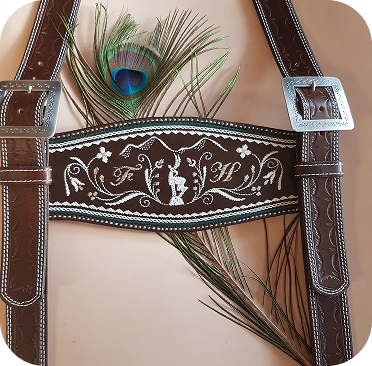 Unsere Hosenträger sind alle Maßanfertigungen, es empfiehlt sich also, die Lederhose(n) zum Ausmessen mitzubringen. Alle unsere Schließen können mit individueller Gravur oder Punzierung hergestellt werden, in Silber, Messing oder Neusilber. Sie werden für uns in Bayern und Tirol in Kleinbetrieben handgefertigt.